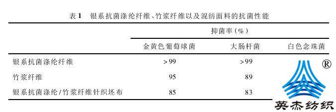 银系抗菌涤纶 /竹浆纤维针织混纺面料经前处理和染色后,抗菌性能严重下降,所以为了保证面料良好的抗菌效果,需在后整理中添加少量的抗菌剂。