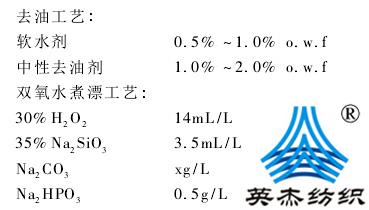 2. 4. 1 前处理工艺由于竹浆纤维的耐碱、耐氧化能力差[2],而且银系抗菌涤纶纤维在碱性介质中的抑菌性会受到一定影响[3],所以前处理采用碳酸钠来代替氢氧化钠,使油剂和色素在较温和的工艺条件下被去除,这样不仅可以保证去除率,还能保持面料的强力不受到影响。
