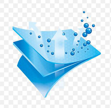 2. 亲水性无孔聚氨酯涂层。亲水性无孔聚氨酯涂层主要利用亲水性基团或亲水成分,通过对水分子的吸附、传递、解吸作用达到透湿。由于膜中没有微孔,因此防水性能很好,但透湿气性能有待于提高。另外,这类涂层织物的缺点是需要表面经拒水整理来改善防水性。这类产品有如英国 Baxenden 化学公司生产的 Witcoflex Staycool、X-liner 等,德国 Bayer 公司的 Impraperm。