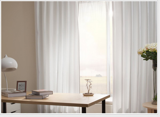 有窗帘、窗纱、卷帘、立式移帘等多种形式,多用于商务办公大楼、酒店、别墅、家居、学校等场所。具有防紫外线的优点,能有效防止紫外线对皮肤及家具的侵害。在阳光直射的时候,只要拉上易可纺防紫外线窗帘就能轻松阻隔紫外线的伤害,营造舒适健康的家居环境。