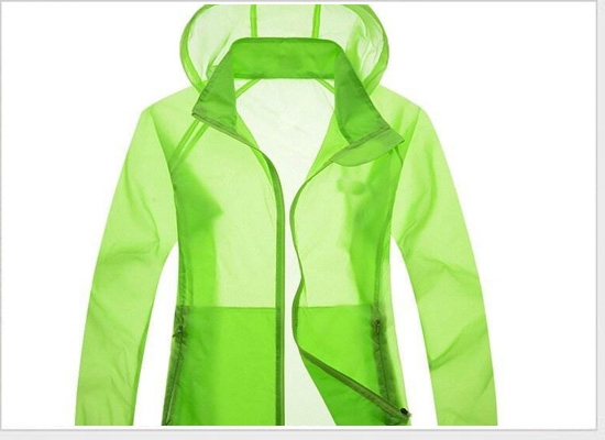 特制的“防紫外线衣”能有效防止紫外线对皮肤的侵害。在炎热的季节穿上具有防紫外线功能的服装,汗水会迅速由皮肤表面导出至织物表面,并很快干燥,不再受到汗湿的困扰。这类服装由于重量轻、手感柔软、容易清洗,穿着轻松舒适,并且具备很强的吸水能力、透气性和一定的防风性,可以让穿戴者在户外活动中保持佳的运动状态。